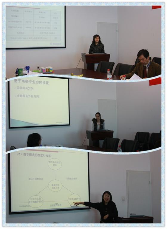 随后,秦良娟副教授从培养方向、外包人才的专业素养要求、如何培养外包人才、今后的努力方向等几方面概括了电子商务专业金融服务外包方向的探索理念,在人才需求变化的深入理解,课程体系的进一步完善,特色专业课程的持续建设,外包领域中重点研究方向的凝练,鼓励教师带动学生参与科研的激励方式,教学模式的改革等方面提出了自己独到的见解。