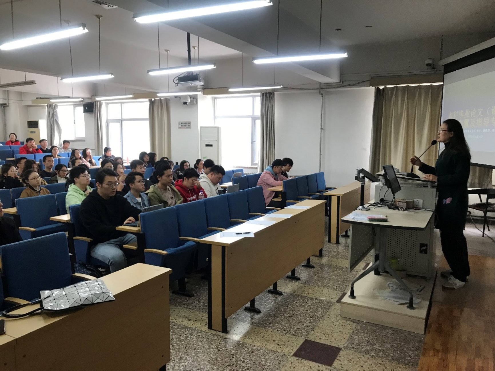 两位老师分别从毕业论文(设计)写作布置及指导、毕业论文(设计)选题类型和注意事项两个方面对2016级本科生的毕业论文(设计)进行针对性讲解和指导。