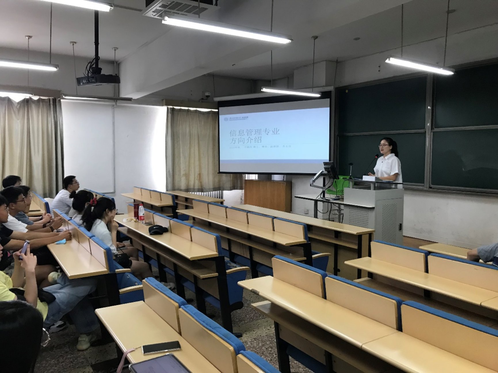 接着,信息管理与信息系统专业系主任于晓丹老师对于本专业的学系背景、专业背景进行了充分的讲解,接着介绍了信管系的培养方案、毕业出口、专业前景、课程体系、师资队伍等内容,最后对学生提出了学习方法以及未来规划上的建议。