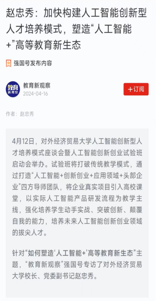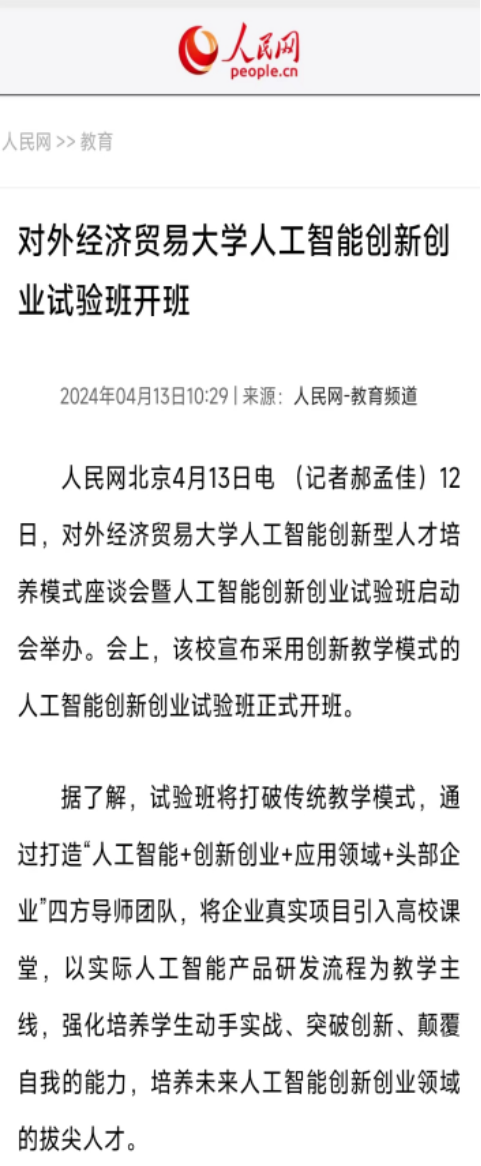 水果派解说 一直坚持响应国家科教兴国战略的号召,实践“人工智能+”行动,积极探索复合型人才培养新模式、新路径。2024年4月12日,在教育部、北京市教委和学校领导的关心指导下,我校启动了人工智能创新创业试验班项目,该项目将面向2024级本科生开展专门选拔,在实践中培养拔尖创新人才。