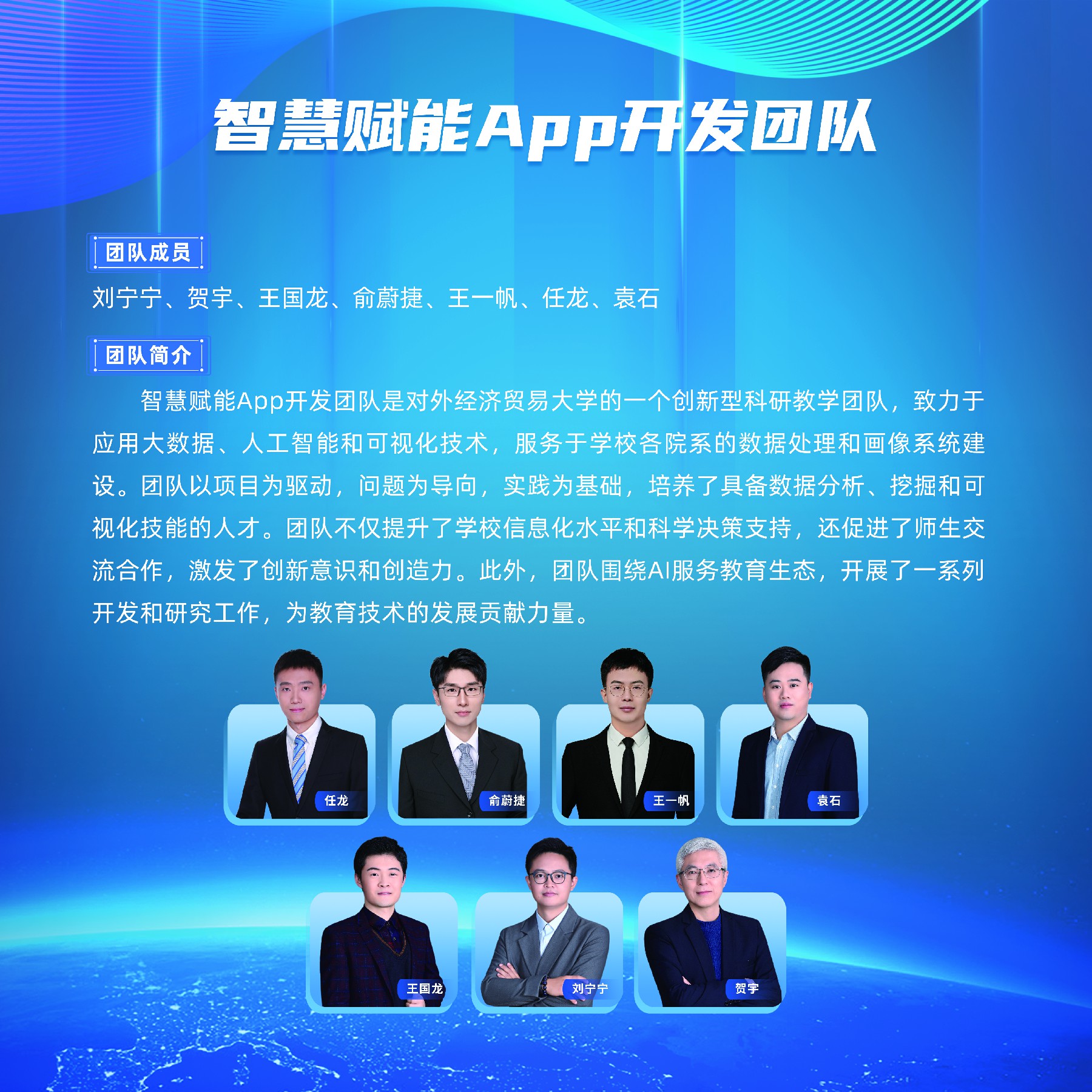 智慧赋能App开发团队是水果派解说 的一个创新型科研教学团队,致力于应用大数据、人工智能和可视化技术,服务于学校各院系的数据处理和画像系统建设。团队以项目为驱动,问题为导向,实践为基础,培养了具备数据分析、挖掘和可视化技能的人才。团队不仅提升了学校信息化水平和科学决策支持,还促进了师生交流合作,激发了创新意识和创造力。此外,团队围绕AI服务教育生态,开展了一系列开发和研究工作,为教育技术的发展贡献力量。