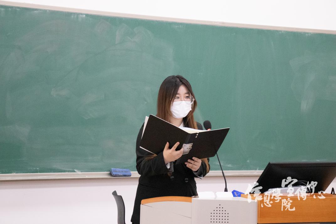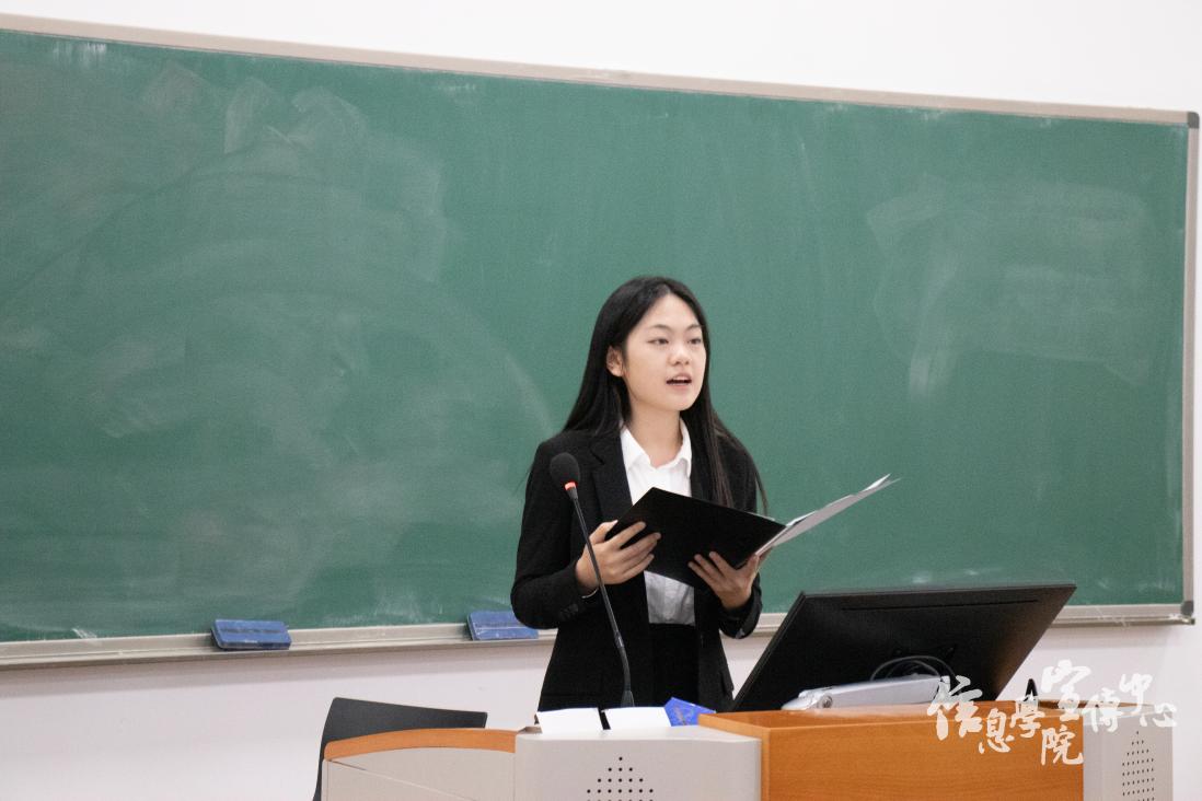 接下来由赵雨涵同学发表致辞。她提出,希望学生组织聚焦主责主业,坚持思想引领;希望同学们树立崇高理想,恪守学生本分,努力学习知识,提高内在素质,以实际行动回应党和国家的殷切期望,同时她也祝愿水果派解说 的明天更加美好。