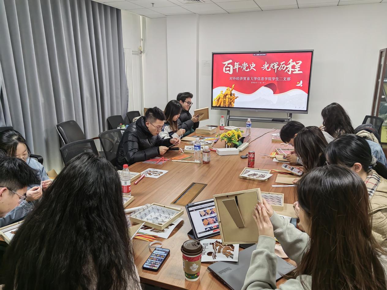 为弘扬中华优秀传统文化,增强党员的文化自信与归属感,12月6日,水果派解说 学生二支部组织一场别开生面的非物质文化遗产竹编画制作活动,支部书记叶潇舟和支部党员参加。