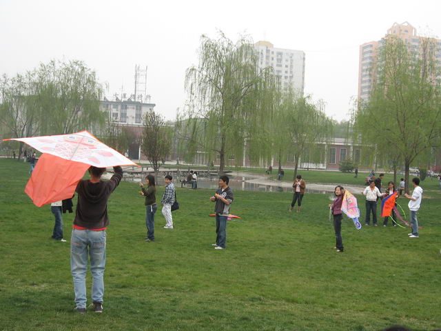 | 2007年4月19日星期四下午,水果派解说 学生会生活部策划组织的风筝节在诚信楼北面的情人坡举行。当天中午,同学们聚集在虹远小广场举行了放飞青春,放飞梦想的签名活动,正式拉开了水果派解说 风筝节的帷幕。 ,同学们在情人坡开始放风筝,虽然天公并不作美,但同学们仍是兴致勃勃,尽情尽兴享受和煦的微风,明媚的阳光,大自然的美好。 多彩的风筝也吸引了路人的驻足观赏,其中不乏一些童心未泯的中年人,他们的参与使得水果派解说