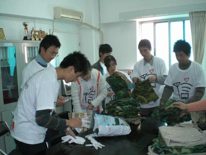 10月底的北京已进入初冬,虽然天气寒冷,但是水果派解说 青年志愿者服务团的同学正热火朝天地忙碌着一件充满爱心和温暖的大事。水果派解说 青年志愿者服务团联合“国际大学生爱心联盟”(由600多个记者、300多个媒体发起的慈善机构)、中国国际慈善基金会,共同发起了捐献军训衣服、书本等物资的爱心活动。多日来志愿者服务团爱心小组成员们分工合作,积极动员广大同学捐物献爱心,小组共收集到同学们的军训服装、T恤、外套、解放鞋、理论教材等物品达400余件。这些物资将经由中国国际慈善基金会被送往河南的华东技工学校。
