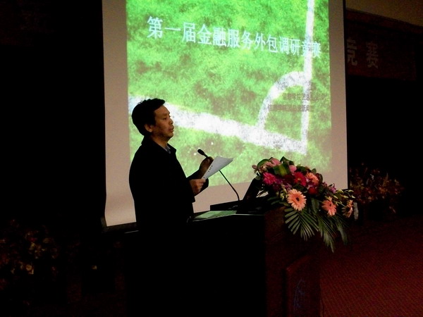 在本次大赛中,各组表现得十分出色,而各位评委的点评也是精彩纷呈。由王宇嘉,李鹏欢,庄金星同学所做的关于西安炎兴科技公司的金融服务外包调研尤为突出。他们从前期准备、调研过程、浅析炎兴科技公司金融服务外包市场以及三人对于外包市场的分析﹑总结和小组成员的心得体会全面的介绍了此次调研活动。他们指出西安金融外包市场的缺点在于人才外流,地理位置影响,金融危机打击,及公司规模较小,而市场的优势也尤为显著。费用低,成本小使得利润增长,高等教育的发达为西安金融外包市场提供了丰富的人才资源,西部大开发的机遇也使西安受到了社会广泛的关注,而西安所具有的强有力的通信网络和数据备份能力是西安金融外包服务快速发展强有力的支柱。最后,该小组根据调研成果,总结出了:我国金融服务外包业务发展仍处于初级阶段,我国金融服务外包行业在体制和服务上仍有待完善,以及我国在该行业中拥有高素质人才的优势以上三点结论。该组的优异表现赢得了评委老师的一致好评。