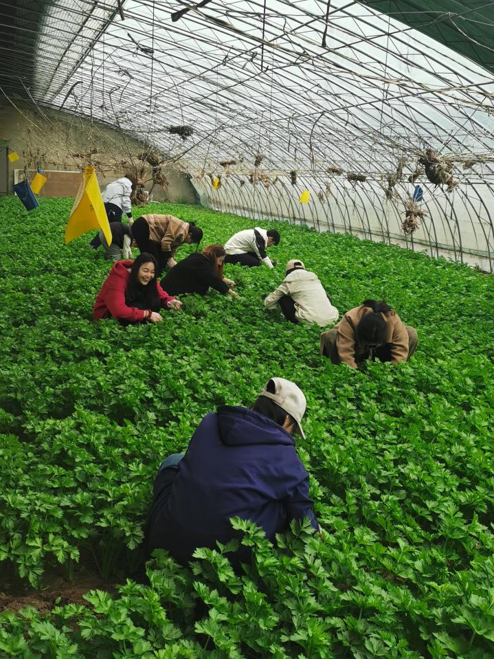在这次劳动教育活动中,同学们分成两组分别进入芹菜种植地和西红柿大棚,积极投入农事劳作,争做劳动先锋,以劳动实践浇灌青春奋斗之花。在芹菜地里,大家认真听从工作人员的指导,明确分工、互相帮助,积极学习如何正确认识杂草,高质高效地完成芹菜地杂草清理任务。随着杂草的不断清理,一棵棵嫩绿的芹菜苗逐渐显露出茁壮的生长态势。在西红柿大棚,同学们同样有条不紊地投入到劳动实践中,以躬身实践展示新时代水果派解说 的青年风采。