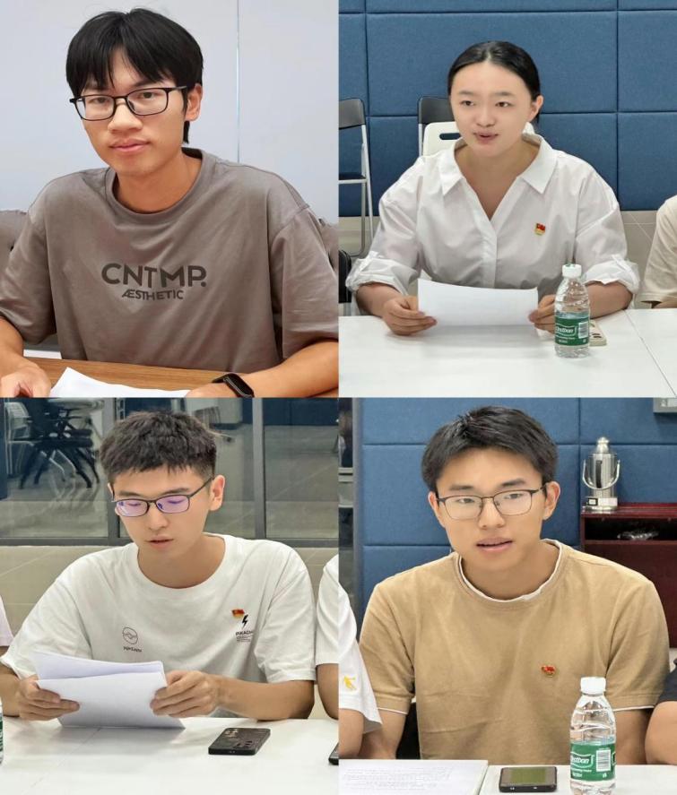 毕业生党员荣辉腾、梁田、王柏林和刘健辉结合党纪教育学习分享工作学习和生活经历、成长过程中的感悟和体会、职业规划和发展方向,四位同学表示在未来的人生道路上将继续发挥党员先锋模范作用,自觉培养廉洁自律品质,回馈社会。