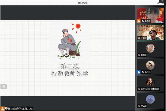 第四部分进行了香港回归知识竞赛,竞赛内容包括十道题目抢答,同学们通过腾讯会议的投票功能积极参加,同时在参与竞赛的过程中加深了对香港回归相关知识的记忆。
