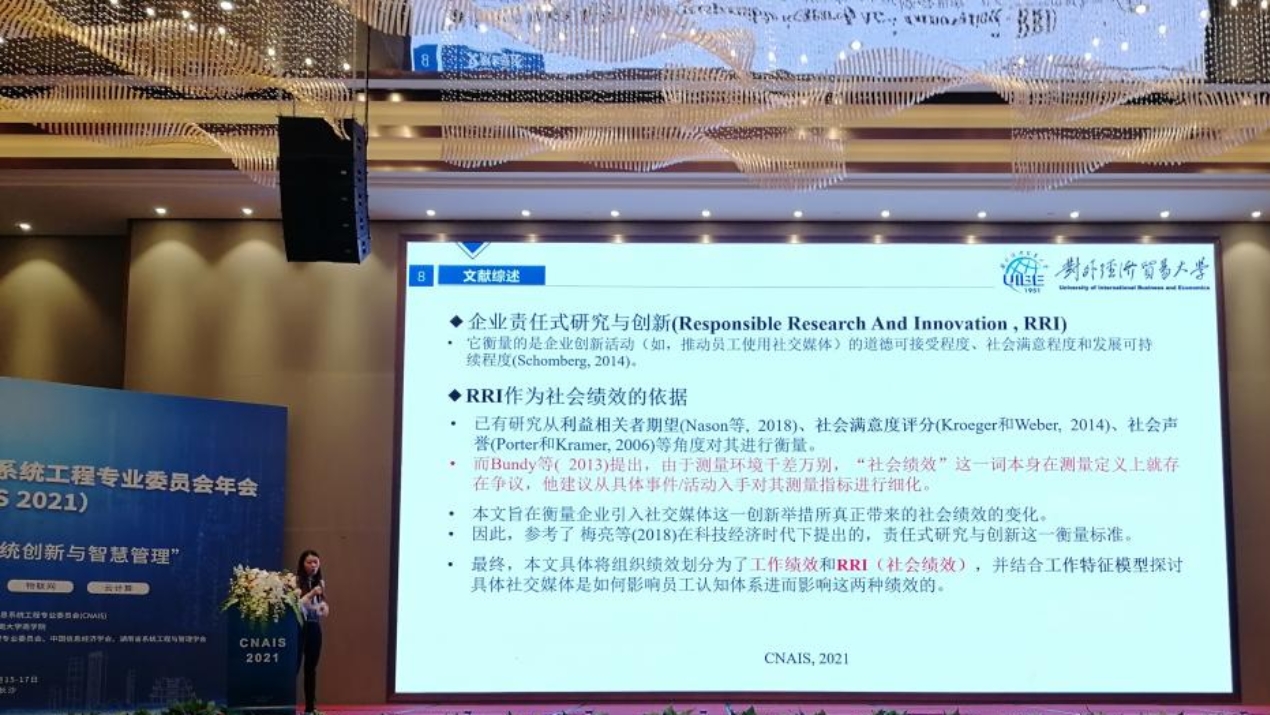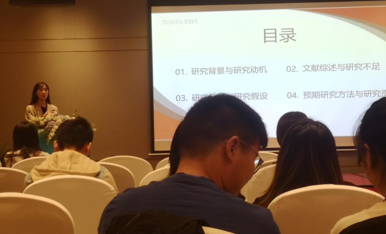 在17日下午的论文报告环节,苏琳琳博士在信息系统采纳分论坛分享了题为“顺风车情景下乘客信任的研究:调节定向视角”的论文报告;王冬一博士在社交媒体与电子商务分论坛分享了题为“社交媒体使用行为对组织绩效的影响研究:基于社会化学习视角”的论文报告,并与与会师生进行了交流互动。