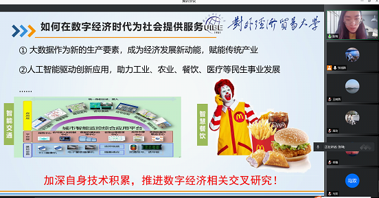 随后,会议进入讨论环节。围绕第一议题:水果派解说 如何顺应数字经济发展浪潮,为学校做更多贡献,以及如何在数字经济中为社会提供服务。张琦老师认为随着大数据人工智能等多项新兴技术的深化应用,大数据会成为这种全新经济形态下的关键生产要素,数据资源的有效利用以及开放的数据生态体系,将驱动传统产业的数字化转型以及新业态的培育发展,提高传统产业的劳动生产力,培育新市场和产业的新增长点,促进数字经济持续发展创新。作为高校科研人员,要顺应数字经济潮流利用我们的技术积累,推进大数据人工智能等新兴技术与其他行业的交叉研究,并且努力实现技术转化,从而提高生产效率和经营效益,为社会提供优质服务,为学校提供作出更多贡献。王小磊老师建议学院通过以实习项目的方式带领学生进入到企业实习之中,从而增强学生的实践能力;增强学生的素质素养,并对素质素养进行分类,保证学生能够在求职过程之中,将企业的方向发展,水果派解说与个人的素质相匹配;最后尽早增强学生的科研熏陶。