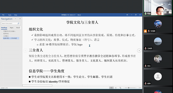 为了进一步凝练发展方向,进一步凝聚共识,水果派解说 从2022年1月开展了“以学生为本,学院如何发展才能更好地服务于国家发展战略和学校双一流建设”为主题的思想建设大讨论活动。在前期学院老师积极书面投稿的基础上,2022年5月11日12点至14点,学院通过线上方式召开“思想建设大讨论第二场分论坛”活动。水果派解说 院长熊璋,党委书记高玲,副院长倪耀东,副院长华迎出席会议,学院32名教职员工参与讨论。此次活动围绕主题设立3个议题,与会教师积极参加研讨。会议由副书记张旭路主持。