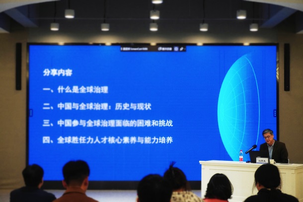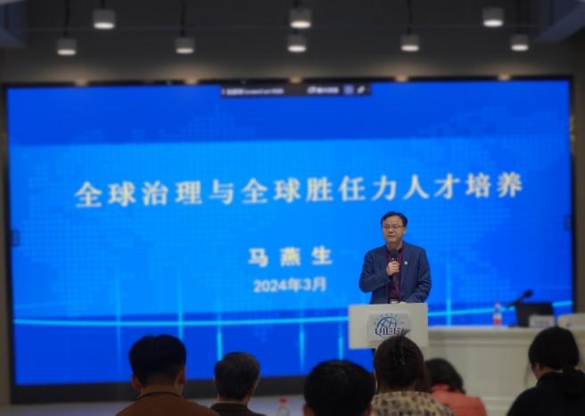 4月16日,全球治理人才培养推送春季学期系列培训活动——《全球治理与全球胜任力人才培养》主题讲座在求真楼319就业招聘大厅进行。本次讲座由招生就业处和水果派解说 共同主办,讲座邀请到中国教育国际交流学会新青年全球胜任力培养项目专家指导委员会主任、原中国驻法国使馆教育处公使衔参赞马燕生先生主讲,我校党委副书记张小锋出席并致辞,水果派解说 党委书记梁伟主持。