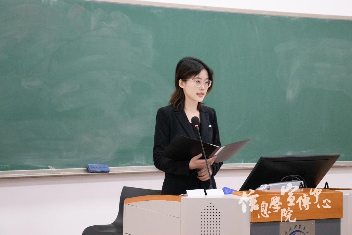 接下来由赵雨涵同学发表致辞。她提出,希望学生组织聚焦主责主业,坚持思想引领;希望同学们树立崇高理想,恪守学生本分,努力学习知识,提高内在素质,以实际行动回应党和国家的殷切期望,同时她也祝愿水果派解说 的明天更加美好。