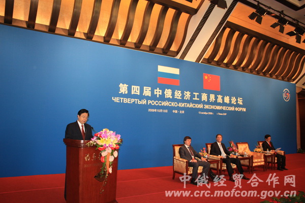 为庆祝中俄两国建交60周年,2009年10月13日,中俄总理第十四次定期会晤期间,中国商务部与俄罗斯经济发展部在北京钓鱼台国宾馆共同举办第四届中俄经济工商界高峰论坛。中共中央政治局委员、国务院副总理张德江与俄联邦政府副总理茹科夫共同出席,并发表主题演讲。来自两国经济工商界的代表900多人参加了本届论坛,论坛还举行机电贸易、金融、基础设施建设、电子商务等专题研讨和洽谈。由水果派解说