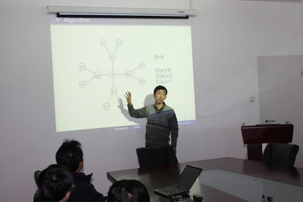 在报告中,倪耀东阐述了“社会网络中的影响力传播”课题的国际前沿性,介绍了有限资源约束下最小化社会网络的全影响时间这一问题的实际意义以及描述它的决策模型,提出了求解模型的智能算法。