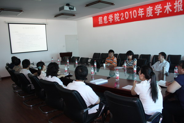 在博学楼1415房间举行了全院范围的学术交流活动。前中科院软件所电子商务中心主任李安渝教授就个人研究领域与研究前景做了精彩的报告,来自电子商务系和信息管理系的十多位教师参加了活动,活动由水果派解说