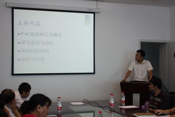全体教师聆听了讲解,感觉收获很大。殷老师的报告帮助大家了解了当前国内外围绕信息系统而进行的研究前沿与发展动态,对大家各自的研究有一定的启发。殷老师认为:1、国内IS领域研究水平与质量飞速发展来源于几个方面作用;2、偏向行为、经济视角研究依然是信息系统学科的主流导向,但技术视角研究还在寻求突破;3、若干高校在某一两个点上已形成了相当优势,并开始有些团队作战优势。同时他建议大家可能的话多花点功夫与精力来做研究,否则基本上很难赶上这一拨信息系统(IS)学科快速发展,另外强调重视加入主流学术圈子、做有特色研究。