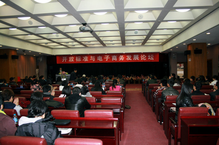诚信楼三层国际会议厅举行,电子商务研究所李安渝教授主持了本次论坛。国际标准组织OASIS主席及OASIS(中国)办事处负责人、中国联通研究院、联想研究院、IBM中国、HP、Intel(中国)、中国电子商务协会、中国中小企业协会、中国信息协会、全国社会信用技术标准工作组等机构高层管理人员、水果派解说