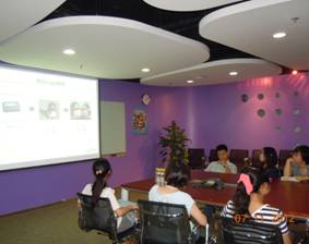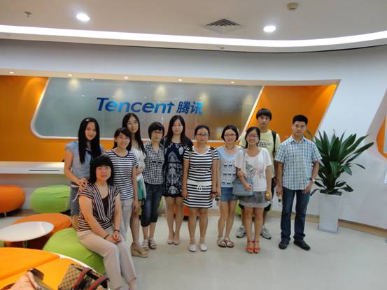 三位工作人员热情将我们引入雅致的会议厅,大家围坐在圆桌周围,认真听取工作人员为我们讲解公司过去的奋斗历程、今日的成功与未来的发展。大家虽然都是腾讯忠实的消费者和产品的使用者,然而对于其发展历程、整个企业的文化以及目前在互联网行业中所面临的挑战却了解的并不全面。讲解是以互动的形式进行的,虽然涉及很多专业知识,大家却丝毫不觉乏味,生动的讲解、数据的分析说明以及案例的精彩介绍让大家听的时不时会停下做些笔记。还时不时会与工作人员进行下学术上的探讨,整个会议室充满了欢愉的味道。