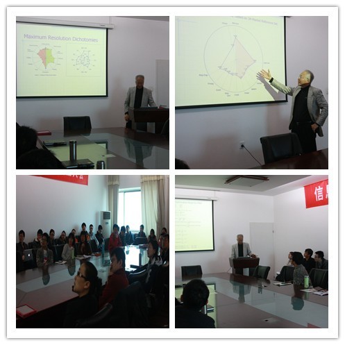 的主题报告。Jamkes K. Ho教授早年毕业于美国哥伦比亚大学,之后在斯坦福大学获得博士学位,在知名学术及行业期刊上都发表了多篇研究论文,并荣获世界教育大会颁发的2012信息系统领域最佳教授奖。Ho教授详细介绍了一种用于复杂数据挖掘的新方法,通过将研究对象属性投射为二元模式,产生优化模型,并形象展示了此方法在客户分析、经济数据分析等实际业务领域的应用。在当前大数据背景下,Ho教授的演讲给大家带来了很多新的启发和思考,并引发了师生热烈的反响,讲座之后大家提出了一些相关问题,并和教授进行了进一步交流探讨。