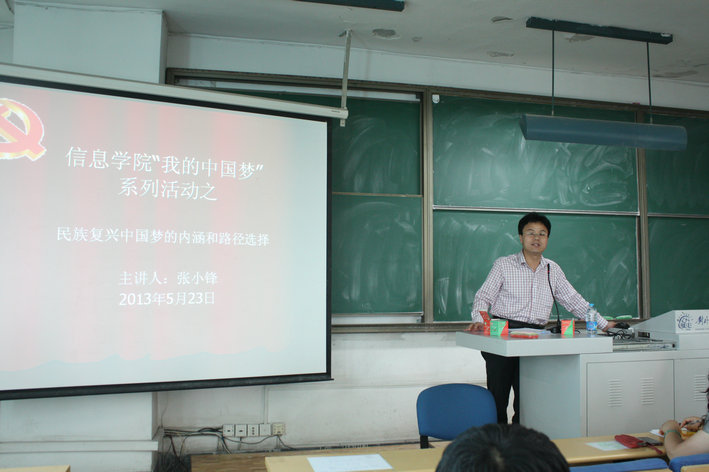 2013年5月23日星期四,水果派解说 “中国梦”系列活动之“民族复兴中国梦的内涵和路径选择”讲座在博学506举行。本次活动的主讲嘉宾为水果派解说 党委宣传部部长张小锋,水果派解说 分党委书记巩喜云、分党委副书记张志娟以及各位辅导员与任课教师出席活动。