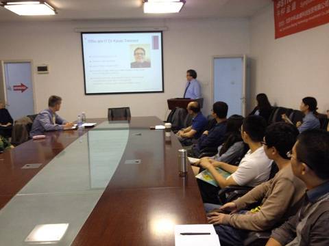 在首先进行的学术讲座中,Kevin Tennent教授做了题为“Business Models and Strategy: An Introduction”的学术报告,并分享了对这一问题的独特体会。参与报告的老师和同学们针对这一研究领域和Kevin Tennent教授进行了热烈的讨论,都感觉受益匪浅。