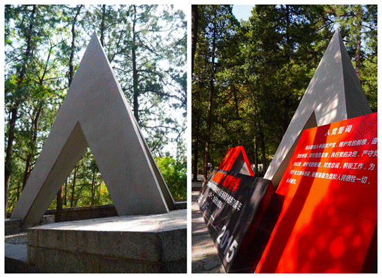 2015年10月18日上午8时,秋高气爽,阳光明媚,党员老教师和党员同学们乘坐校车从学校西门出发,前往北京植物园。9时30分到达后,老教师和同学们步行来到植物园深处的“12·9学生爱国运动”纪念亭广场。纪念广场上立着三座显眼的白色帐篷状石亭,重现了1935年北平学生们策划129运动的场景。广场的四周立着关于纪念抗战70周年和129学生爱国运动的宣传展板,同学们和老师们纷纷驻足认真阅读史料。