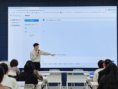 在第一期工作坊中,俞蔚捷老师以“AI赋能高校教育教学的多场景融合实践——以惠园AI广场为例”为题,系统展示了AI智能体在教学内容设计、课堂组织与学习评价等环节的应用路径。依托“惠园AI广场”平台,俞老师重点演示了AI在课件生成、智能出题、翻译润色、学术写作指导、课堂互动管理等方面的能力,并通过“实操+答疑”的形式,帮助教师切实理解AI工具如何转化为教学生产力。