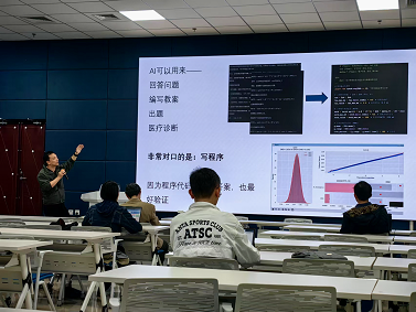 在第七期工作坊中,佟强老师以“大模型辅助编程”为主题,系统介绍了大语言模型在教学科研编程中的实际应用能力。佟老师从代码生成、跨语言重构、文档生成与知识问答、复杂任务分解与规划等五个典型应用场景出发,结合多个代码示例,演示了大模型如何实现编程任务的自动化与智能化处理。讲座特别强调了大模型在教学辅助、科研原型开发中的效率提升作用,激发了参会教师将AI引入课程设计与研究开发的兴趣。
