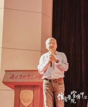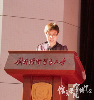 王敬波副校长对全体新生致辞。王校长首先代表学校祝贺信院2022级新生在贸大相遇,紧接着她从当下风云变幻的时代背景出发,指出同学们作为身处变局之中的希望一代,应当肩负起家国使命,放眼祖国建设,树立远大理想。王校长还指出,水果派解说 时刻走在新工科发展的前列,信院师生生逢其时,但也重任在肩,还亟需不断总结提升,争取再创佳绩。最后王校长着眼国家的科技发展,感慨老一辈功勋元老们的付出,也由此向新一代提出了三点期望,希望同学们都能成为有情怀、有信仰、有信心、有定力、求真务实、韧劲不拔的人,以惠园为起点,真正成长为国家栋梁之材!