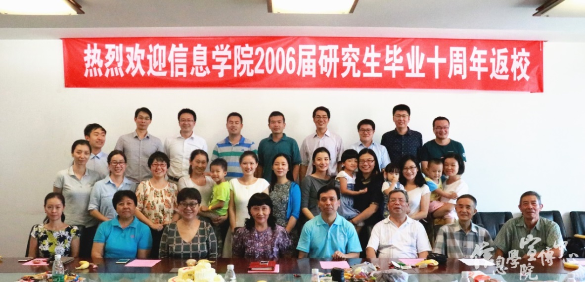 座谈会上,师生欢聚一堂,追忆过往书香时光,恰逢第32个教师节和母校65周年华诞,师生聚首,共庆佳节。老师们热烈欢迎校友们回到母校。期间,各位老师一一发言,回忆了过去师生间只争朝夕、孜孜不倦的生活点滴,表达了对此番毕业生返校的欣喜之情,也对毕业生们赠予了宝贵的建议,寄托了殷切的希望。华迎副院长表达了对校友们“常回家看看”的期盼之情,并热切邀请同学们助力信院薪火相传,为在校的学弟学妹们提供学习指导和各种机会。同时,老师们纷纷感叹十年时光荏苒,校园景观焕然一新,各位同学也厚积薄发,并鼓励大家对人生有进一步的规划和追求。陈恭和老师在会上引诗一首:“十年离别后,长大一相逢。问姓惊初见,称名忆相容”,以表师生们的十年阔别之情。