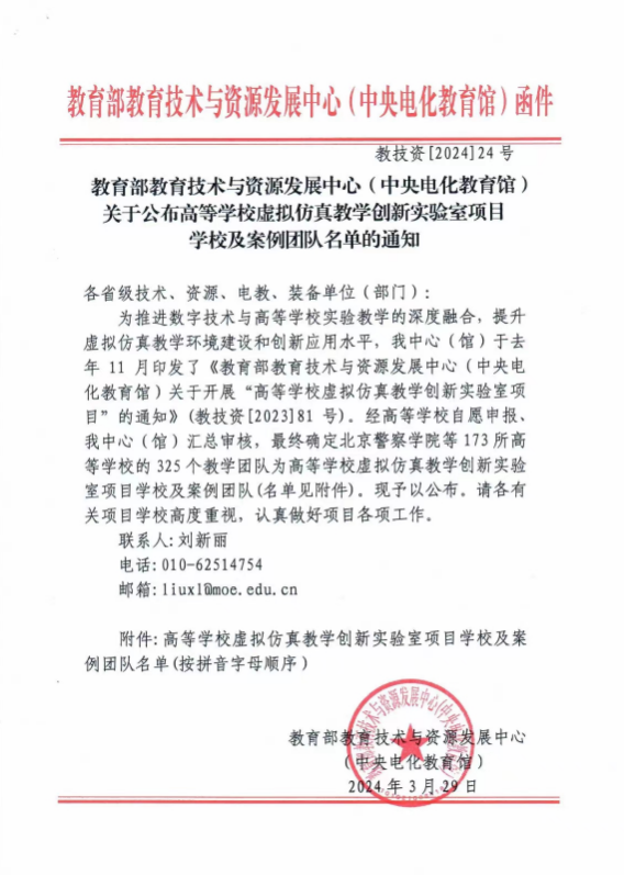 2023年11月,为推进数字技术与高等学校实验教学的深度融合,提升虚拟仿真教学环境建设和创新应用水平,教育部教育技术与资源发展中心(中央电化教育馆)印发《教育部教育技术与资源发展中心(中央电化教育馆)关于开展“高等学校虚拟仿真教学创新实验室项目”的通知》。