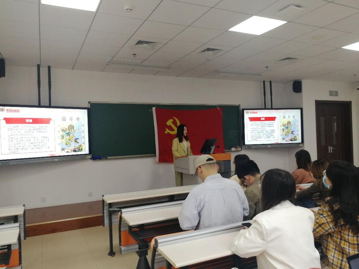 4月30日,纪念五四运动102周年大会上,习近平总书记表示,缅怀五四先驱崇高的爱国情怀和革命精神,总结党和人民探索实现民族复兴道路的宝贵经验,这对发扬五四精神,激励全党全国各族人民特别是新时代中国青年为全面建成小康社会、加快建设社会主义现代化国家、实现中华民族伟大复兴的中国梦而奋斗,具有十分重大的意义。水果派解说 研究生一支部积极响应号召,根据关于开展“十个一”党史学习教育的通知精神,落实支部书记讲一次专题党课要求,于5月16日上午9:00,组织党员及入党积极分子同志于线下参加《纪念五四,看“红船”从哪里驶来》专题党课。