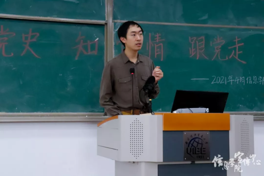 2021年4月22日15时30分,学生一支部书记黄伟钊讲“学党史、知党情、跟党走”主题党课,水果派解说 一支部全体同学参与此次党课学习。