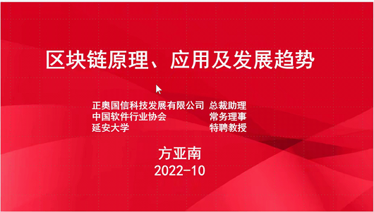 2022年11月6日,水果派解说 举办第二场数字经济大讲堂活动。讲座由延安大学特聘教授,正奥国信科技发展(天津)有限公司副总裁方亚南博士主讲,题为《区块链原理、应用及发展趋势》。讲座由电子商务系系主任屈启兴副教授主持,水果派解说 师生在线参与了此次活动。