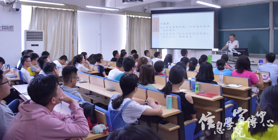 关工委主任、原副校长黄震华老师为初入惠园的2017级本科新生同学们进行讲授,水果派解说