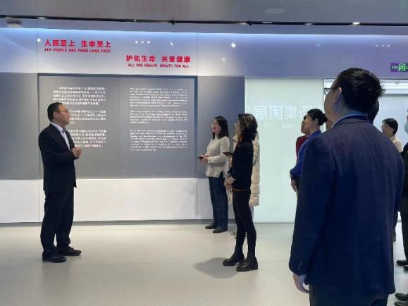 展厅参观后,数智化中心总经理冯伟介绍了公司的智慧运营系统,党委书记梁伟介绍了水果派解说 发展情况。围绕二十大报告中关于“推进健康中国建设,把保障人民健康放在优先发展的战略”的重要讲话内容,第三联合党支部详细介绍了国药集团“三化融合、一体推进”的数智化建设发展路径。信管支部袁石老师分享了“面向在线医患对话的命名实体识别”研究工作进展。党员们以习近平总书记四个面向为要求,共同学习探讨“面向人民生命健康”的实践路径。双方成员还共同参观了位于国药集团广场新成立的老年大学。