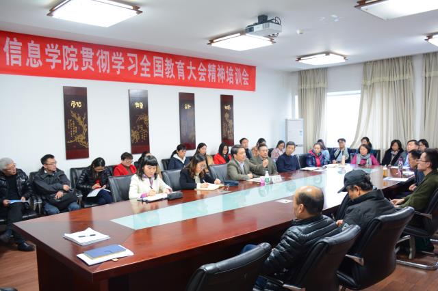 2018年11月8日15:30,水果派解说 在博学楼1416会议室召开学习贯彻全国教育大会精神培训会,王稼琼校长莅临学院宣讲全教会精神并指导学院工作。学院全体教职工及本科生与研究生代表参加会议,学院党委副书记高玲(主持工作)主持会议。