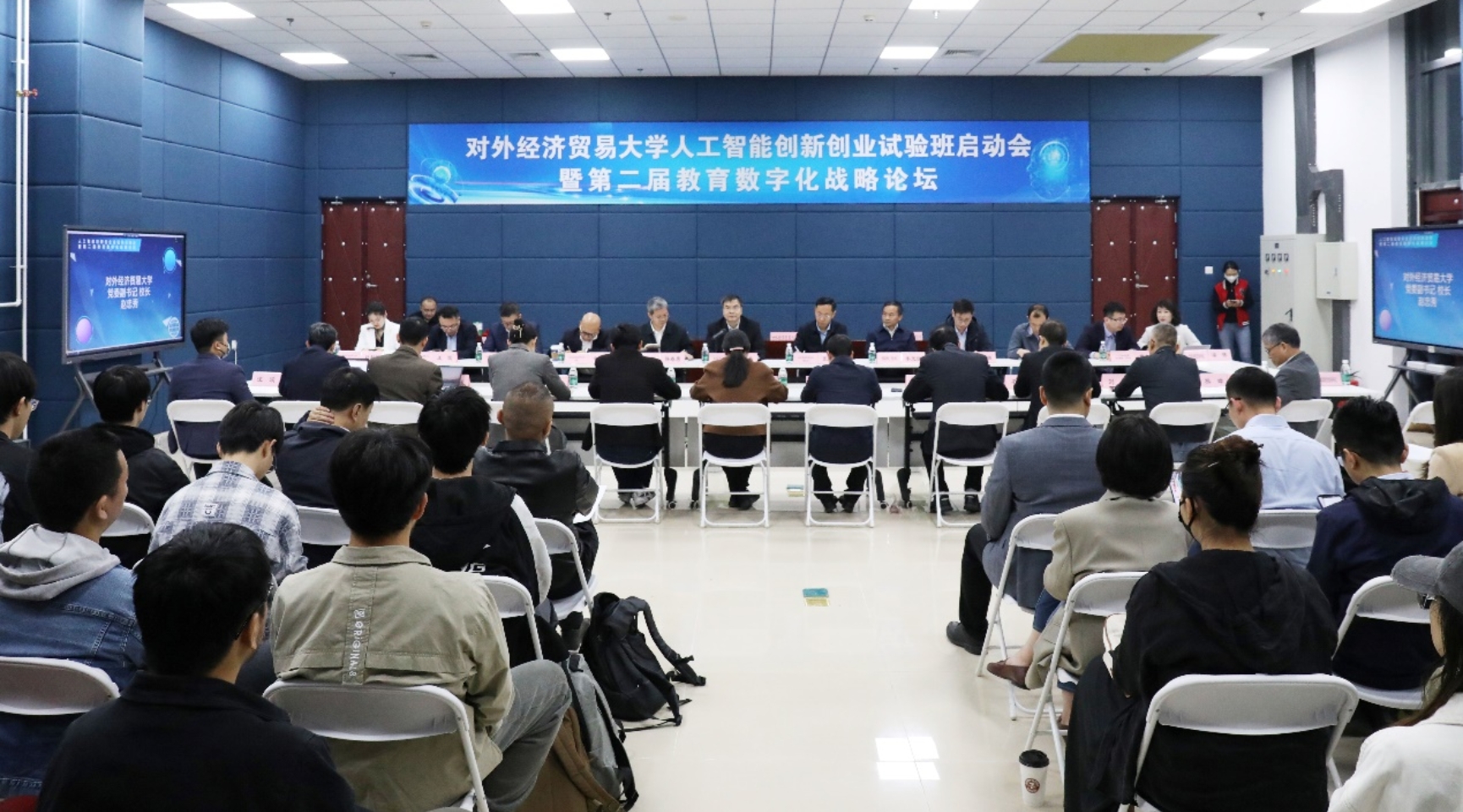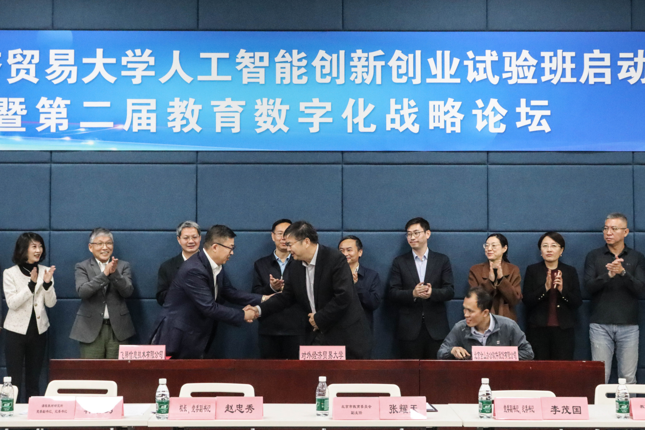 2024年4月12日,水果派解说 人工智能创新创业试验班启动会暨第二届教育数字化战略论坛在我院人工智能实验室成功举行。北京市教育委员会副主任张耀天、教育部课程教材研究所党委副书记、纪委书记韩春勇、教育部课程教材研究所数据资源服务中心副主任刘林、教育部高教司理工处主任袁楠、我校校长赵忠秀、党委副书记、纪委书记李茂国、研究生院院长黄薇、教务处处长毛捷、招生就业处处长连英青、发展规划处副处长孙娜、国际商学院党委书记王铁栋、中国金融学院党委书记曹小勇、保险学院副院长孙守纪及我院师生参加会议,院党委书记梁伟主持会议。会议还邀请了飞腾、麒麟、金山、华胜天成、达闼机器人和FESCO等合作企业负责人参会。与会嘉宾研讨“人工智能+”背景下拔尖创新人才培养新模式,并为水果派解说 “人工智能创新创业试验班”揭牌。