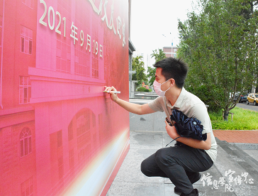 校友们在求索楼签名墙前签名并合影留念,一同庆祝母校七十周年华诞。