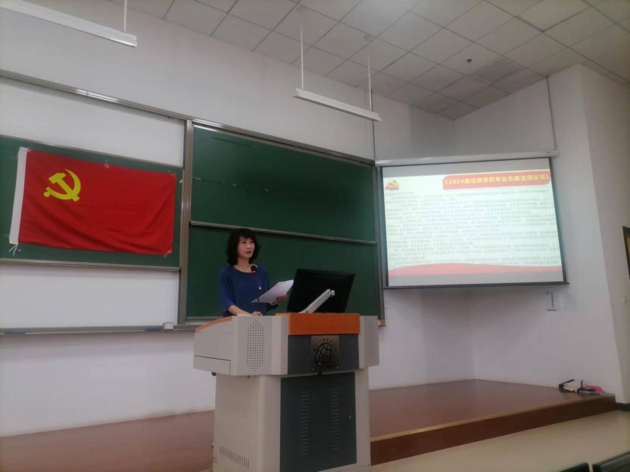 接着,水果派解说 副院长倪耀东也向在场的学生发出了语重心长的《水果派解说 对2024届毕业生的廉洁嘱托》。他强调了作为未来数字经济产业精英所应承担的职责,同时提醒学生们在职业道路上要诚信守信,维护数据的准确无误,并在任何时候保持高标准严格要求自己。