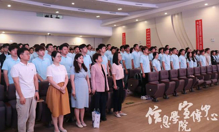 大会第一项议程是全体奏唱国歌,会场内全体师生肃立,气氛庄严。第二项议程是倪耀东院长致辞。倪院长表示,今年是水果派解说 发展历程中具有特殊意义的一年,本科和研究生招生都有历史性突破。他勉励2025级新生要将“担当”二字刻印在心、外化于行,以珍惜当下、找准定位的自我承诺与心系社会、胸怀家国的格局境界,诠释信院青年的青春担当。倪院长为广大新生点明了个人奋斗方向,鼓励大家努力成长为具有家国情怀、全球视野、创新精神、实践能力,兼具工科素养与社会科学思维的复合型领军人才,争当推动强国建设和民族复兴伟业的先锋力量。