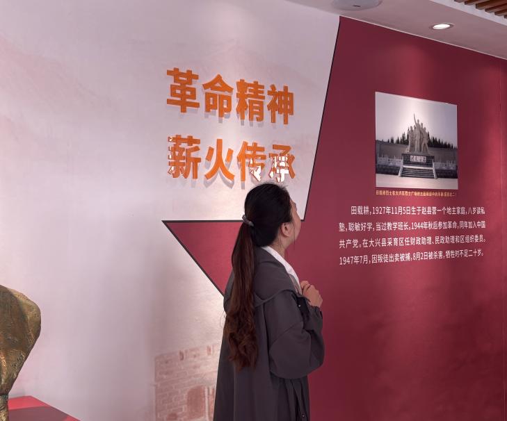 上午10点,师生一行抵达长子营镇田载耕烈士陵园。踏入陵园,庄严肃穆的氛围让大家沉静下来。过程中,纪念馆讲解员为师生们细致讲解陵园的由来、烈士们的奉献故事,带领大家重温那段峥嵘岁月,帮助师生深入理解革命精神的内涵与价值。同学们驻足在烈士纪念碑前静静缅怀,认真阅读展牌上的文字介绍,在沉浸式体验中进一步感悟红色精神的力量,接受深刻的爱国主义教育。