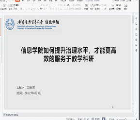 首先,王敬波副校长讲话。她高度肯定了水果派解说 往期思想建设大讨论的成果和本次大讨论的选题。王校长提出“无团队,无大发展”的理念,水果派解说 是学校有较大发展潜力的学院,今后要加强学院的团队建设,希望未来招聘时,将团队合作能力作为招聘条件之一,要把教师个人发展作为团队发展的引擎,要做1+1大于2的工作;王校长希望各位老师在信息技术飞速发展的大背景下,能够顺应时代发展,要加强跨学科的理解能力,并将此作为自身发展的原动力。王校长希望水果派解说 能够加强治理能力,提升治理水平,并将之作为学院建设的重点之一,要通过公开公平讨论形成的制度进行治理,在治理过程中要强调集众人的智慧进行共治,要发扬各位老师的主人翁意识,形成协商、团结、向上的学院氛围;王校长也充分肯定了各位老师对于在线教学所付出的努力,希望水果派解说 借助自己的专业优势成为学校在线教育的范例,逐步积累在线教育质量提升的经验。