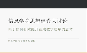 高玲书记听了各位老师的分享后表示很受感动和启发。她衷心感谢各位老师积极参加思想建设大讨论,这充分体现了各位老师的主人翁意识。各位老师的发言,为学院的发展共治提供了智慧和力量,师资队伍建设对于人才强院至关重要,各位老师的建议为学院下一步师资队伍建设提供了思路和方法;学院治理能力的提升是学校治理能力提升的基础,学院治理应该通过制度建设,进行精细化管理,通过体制机制创新,激发每位老师的创造力,除了制度建设外,还要强调制度的执行力及每位教职员工基于爱校、爱院、爱岗、爱生的责任心建立;通过老师们在线教学实践经验的分享,相信将为未来提升学院教学质量打下扎实基础。