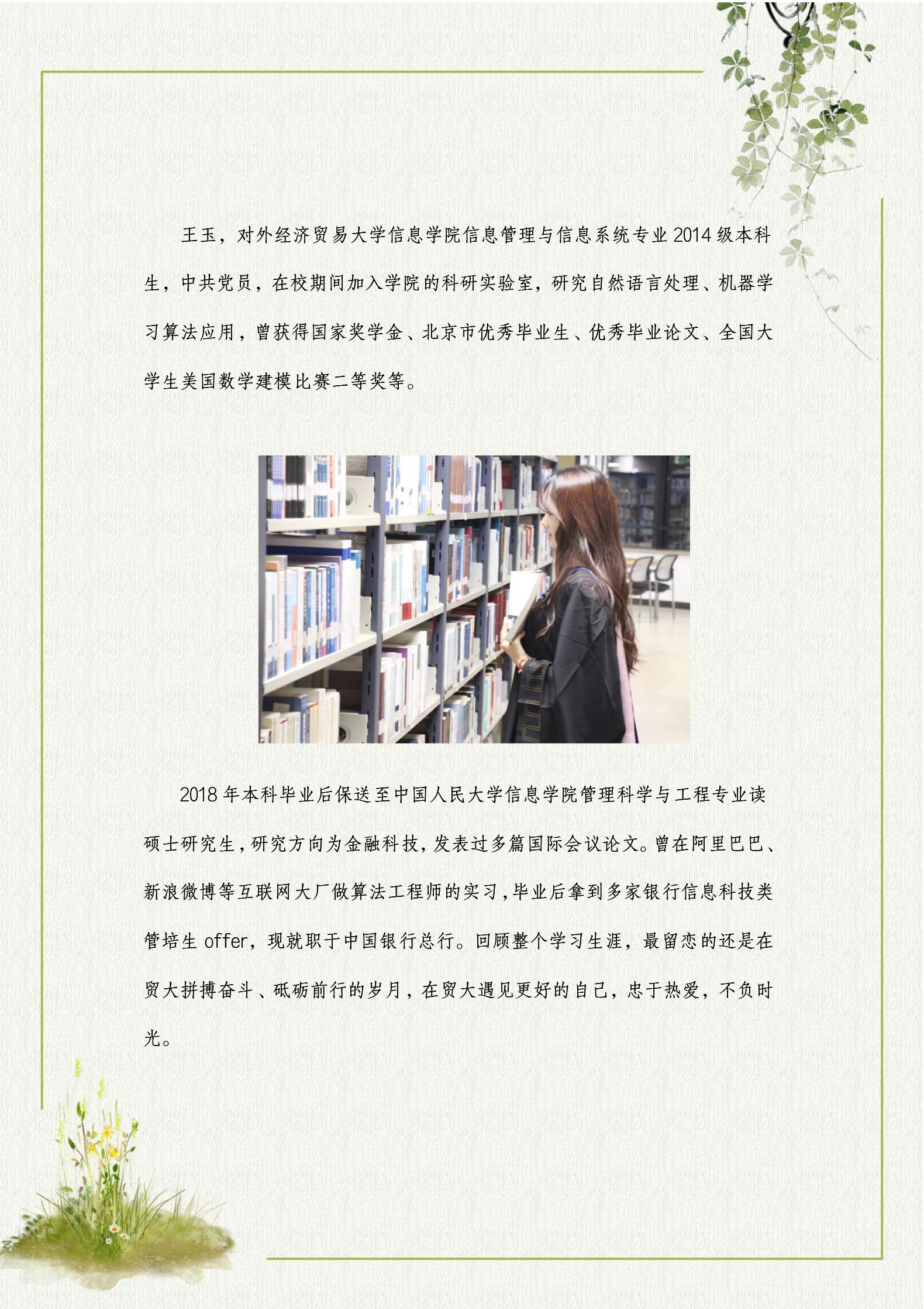 王玉:就职于中国银行总行的杰出毕业生