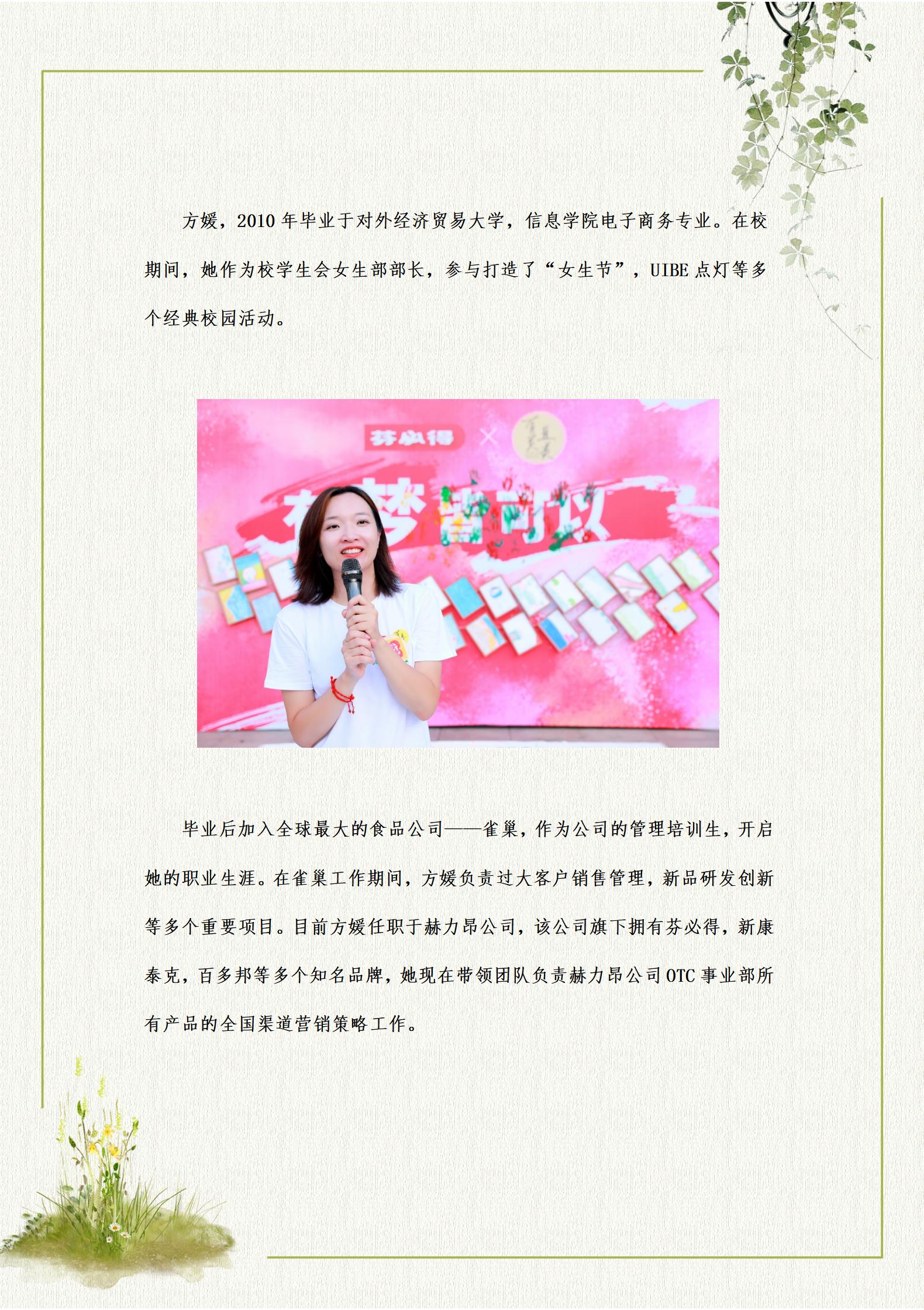 方媛:负责赫力昂公司OTC事业部所有产品的全国渠道营销策略工作的杰出毕业生
